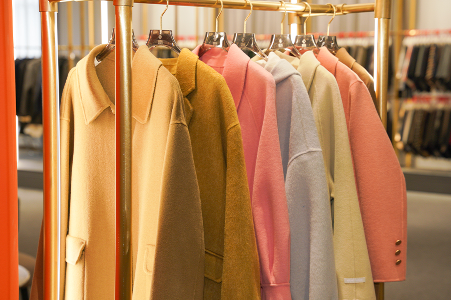 Produksi garmen: Mantel, jaket, dan pakaian luar untuk musim gugur dan musim dingin, dengan pilihan pemakaian yang dapat dibalik.